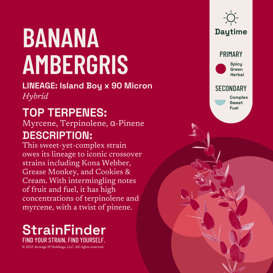 This sweet-yet-complex strain owes its lineage to iconic crossover strains including Kona Webber, Grease Monkey, and Cookies & Cream. With intermingling notes of fruit and fuel, it has high concentrations of terpinolene and myrcene, with a twist of pinene.