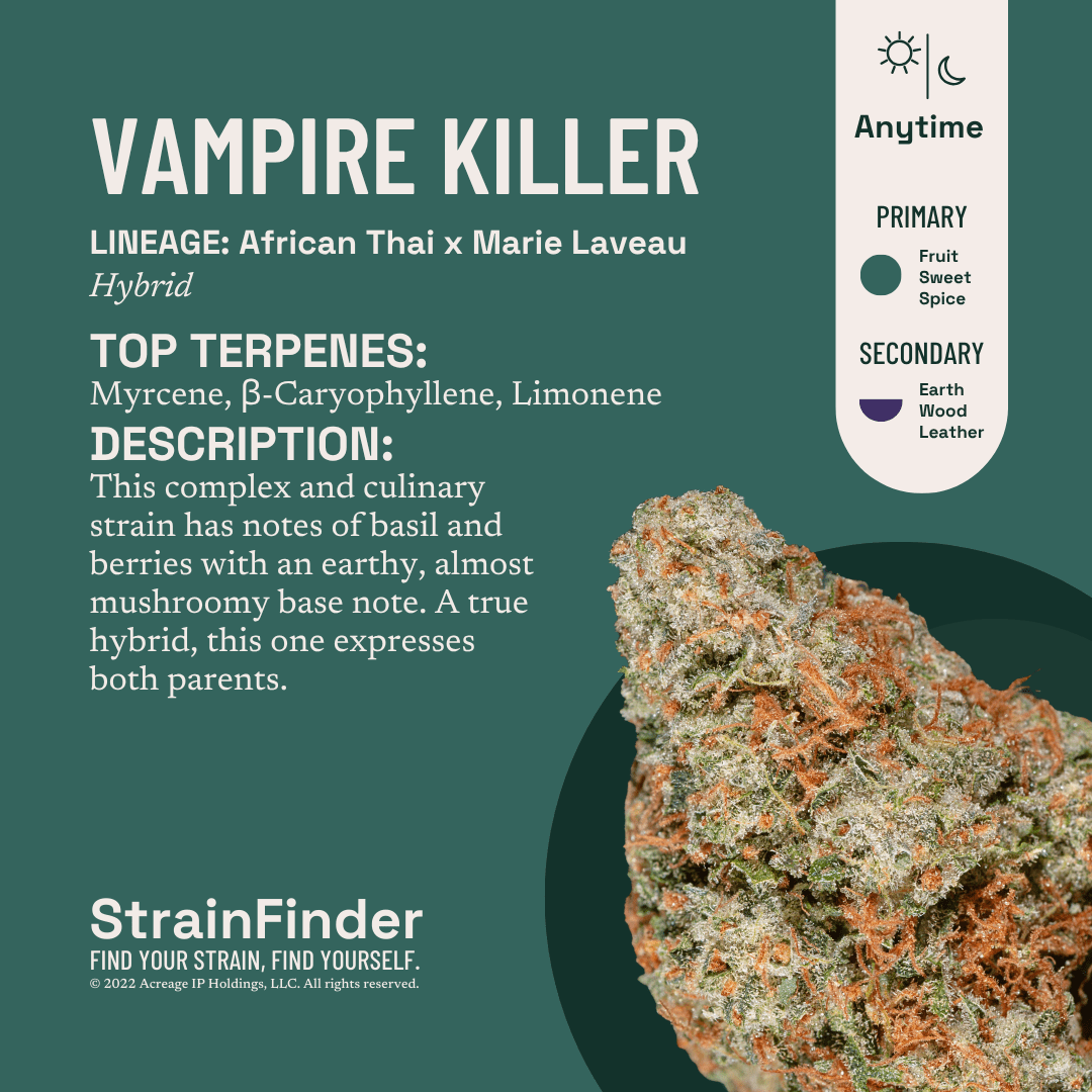 This complex and culinary strain has notes of basil and berries with an earthy, almost mushroomy base note. A true hybrid, this one expresses both parents.